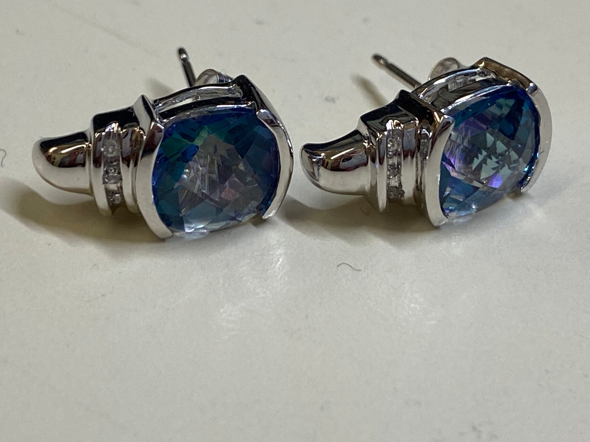 Description : Beautiful 10k white gold earrings with mystic topaz stones.