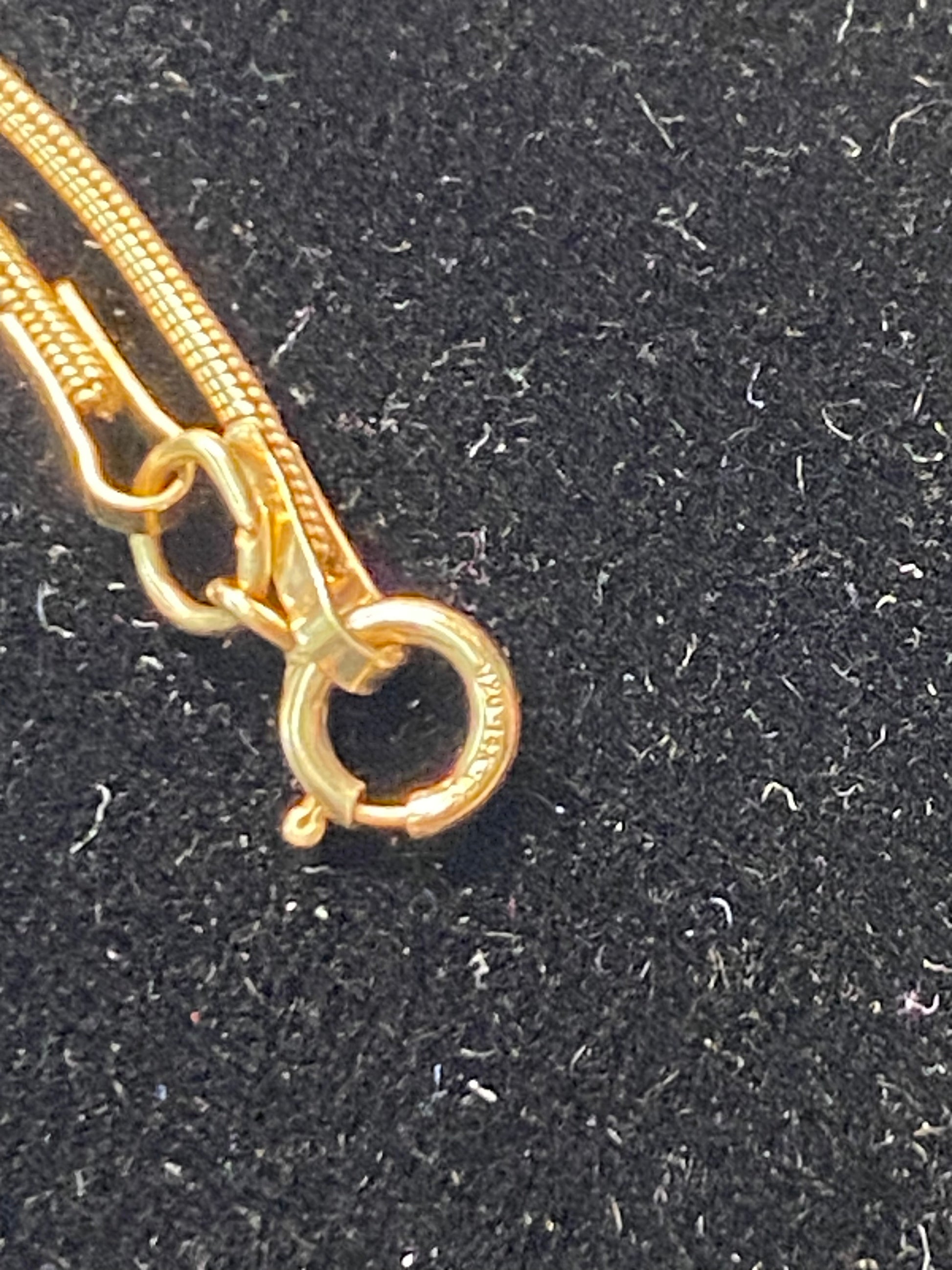 Description : Made by artist Worth Elizabeth Cooley-Prost, this necklace features a description written by the artist herself, and hangs from a 14k gold filled chain.