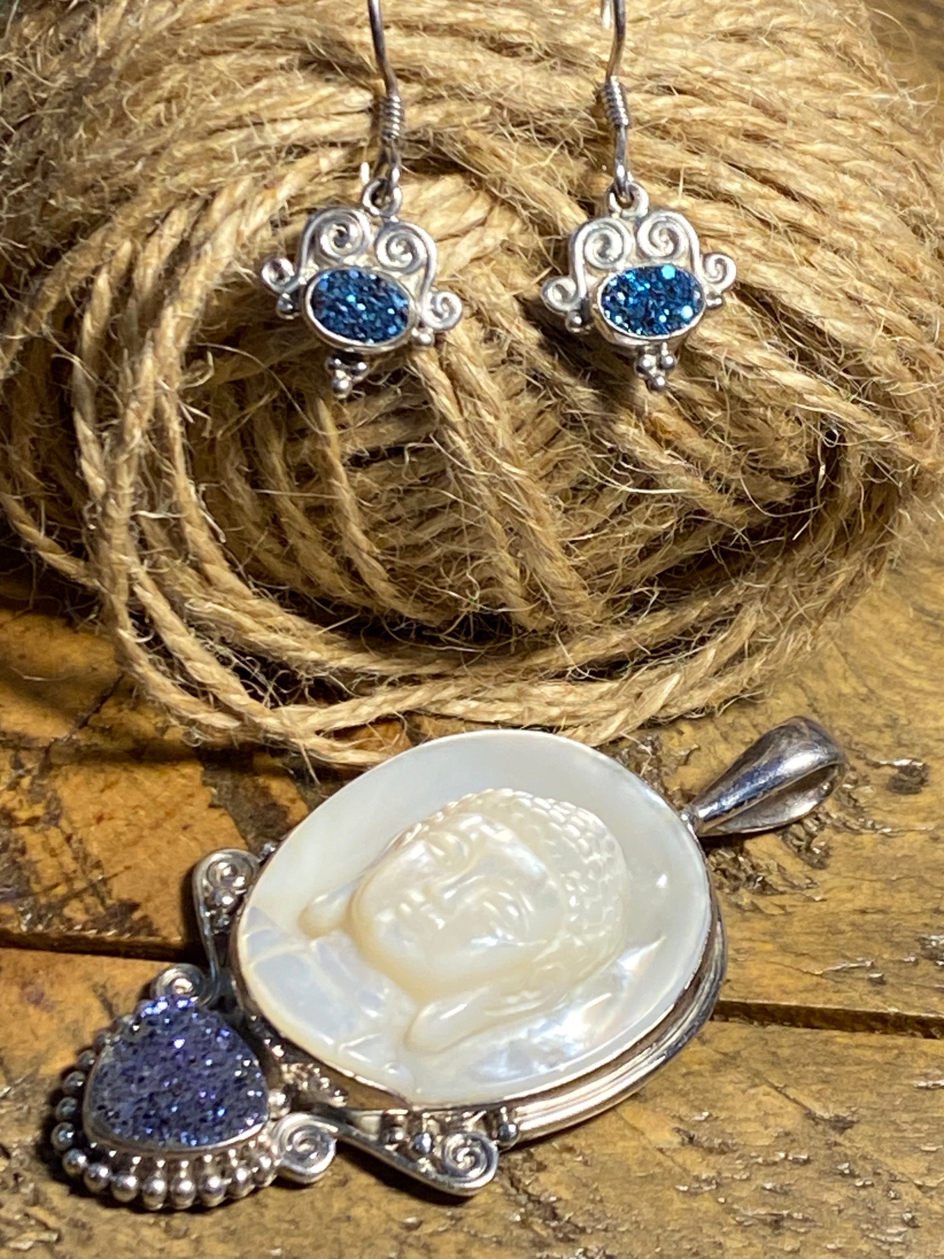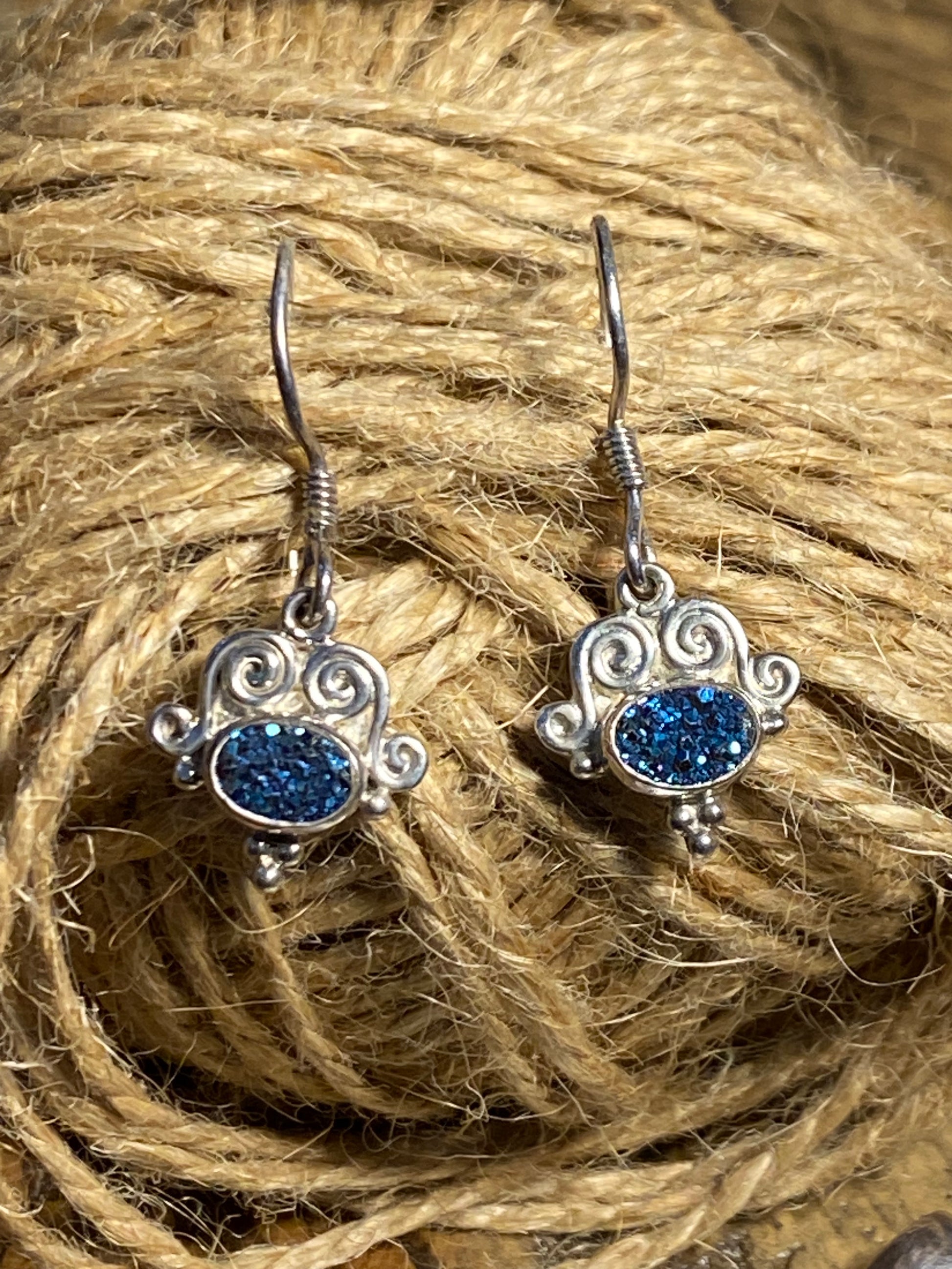 Description : Beautiful blue druzy stones set in solid 925 sterling earrings from SAJEN.